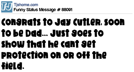 X is Congrats to Jay Cutler, soon to be Dad... Just goes to show that he cant get protection on or off the field.