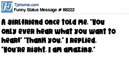 X says A girlfriend once told me, "You only ever hear what you want to hear!" "Thank you," I replied. "You're right, I am amazing."