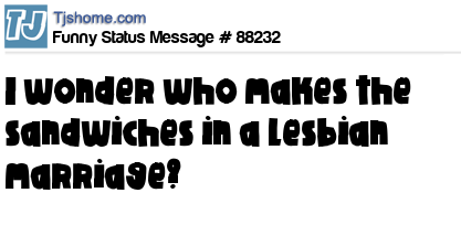 X I wonder who makes the sandwiches in a lesbian marriage?