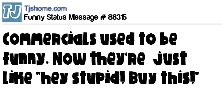 X is Commercials used to be funny. Now they're just like "hey stupid! Buy this!"