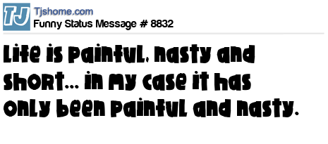 - # 26003 Life is painful, nasty and short... in my case it has only been painful and nasty.