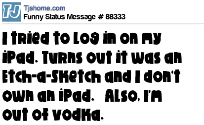 X I tried to log in on my iPad. Turns out it was an Etch-a-Sketch and I don't own an iPad. Also, I'm out of vodka.
