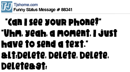 - # 183325 Girl - "Can I see your phone?" Boy - "Uhm, yeah, a moment, I just have to send a text." <Delete, Delete, Delete, Delete>