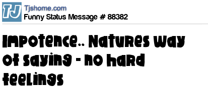 - # 46902 Impotence: Natures way of saying "No Hard Feelings!"