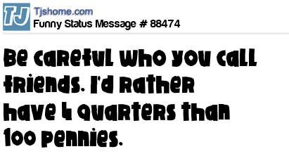 - # 87975 Be careful who you call your friends. I'd rather have 4 quarters than 100 pennies
