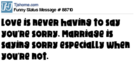 X says Love is never having to say you're sorry. Marriage is saying sorry especially when you're not.