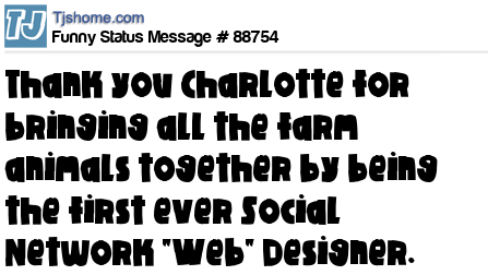 X is Thank you Charlotte for bringing all the farm animals together by being the first ever Social Network "Web" Designer.