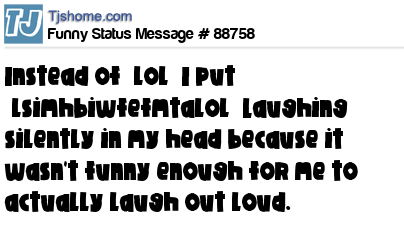 - # 74272 Instead of "lol" try "lsimhbiwfefmtalol". Laughing silently in my head because it wasn't funny enough for me to actually laugh out loud