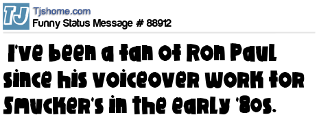 X   I've been a fan of Ron Paul since his voiceover work for Smucker's in the early '80s.