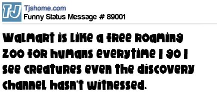X Walmart is like a free roaming zoo for humans everytime I go I see creatures even the discovery channel hasn't witnessed.