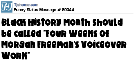 X is Black History Month should be called "Four Weeks Of Morgan Freeman's Voiceover Work"
