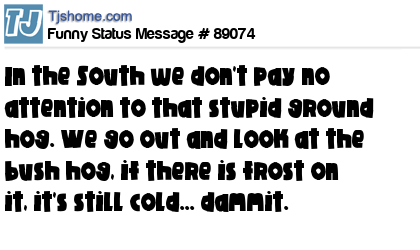 X In the South we don't pay no attention to that stupid ground hog. We go out and look at the bush hog, if there is frost on it, it's still cold... dammit.