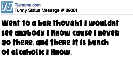 X is went to a bar thought I wouldnt see anybody I know cause I never go there, and there it is bunch of alcaholic I know.