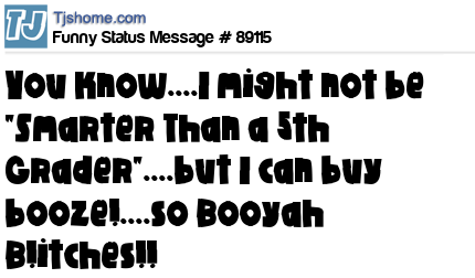 X says you know....I might not be "Smarter Than a 5th Grader"....but I can buy booze!....so Booyah B!itches!!