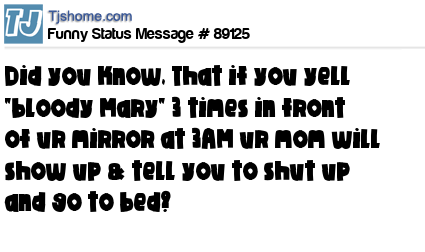 X Did you know, That if you yell "bloody Mary" 3 times in front of ur mirror at 3AM ur mom will show up & tell you to shut up and go to bed?