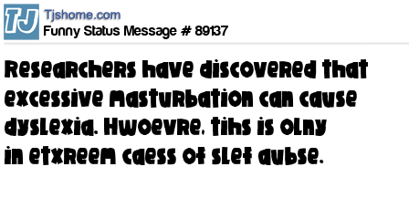 X is Researchers have discovered that excessive masturbation can cause dyslexia. Hwoevre, tihs is olny in etxreem caess of slef aubse.