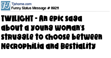 X says TWILIGHT - An epic saga about a young woman's struggle to choose between Necrophilia and Bestiality
