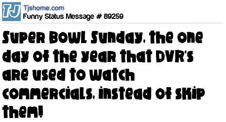 X Super Bowl Sunday, the one day of the year that DVR's are used to watch commercials, instead of skip them!