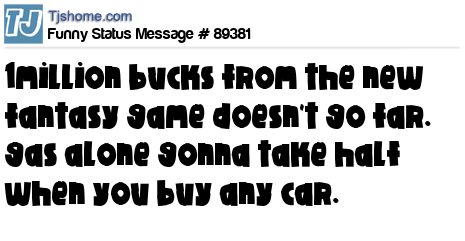X 1million bucks from the new fantasy game doesn't go far. gas alone gonna take half when you buy any car.
