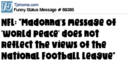 X is NFL: "Madonna's message of 'world peace' does not reflect the views of the National Football League"
