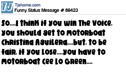 X says so....I think if you win The Voice, you should get to motorboat Christina Aguilera....but, to be fair, if you lose....you have to motorboat Cee Lo Green....