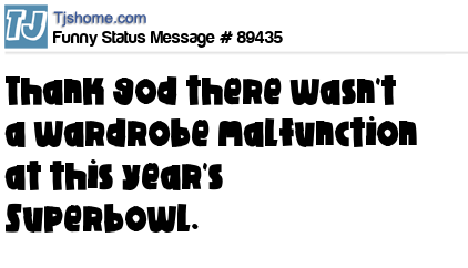 X says Thank god there wasn't a wardrobe malfunction at this year's Superbowl.