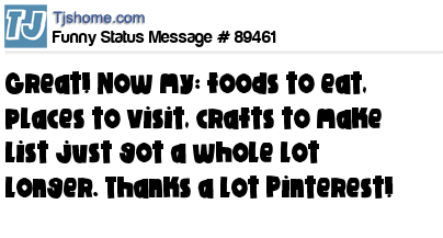 X says Great! Now my: foods to eat, places to visit, crafts to make list just got a whole lot longer. Thanks a lot Pinterest!