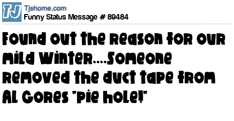X has found out the reason for our mild Winter....Someone removed the duct tape from Al Gores "pie hole!"