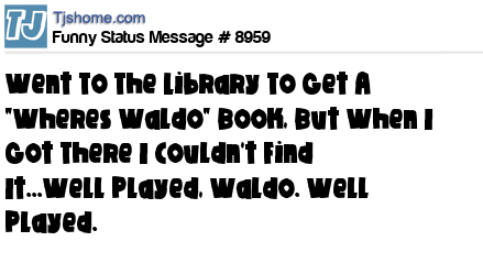 - # 47916 I went to the bookstore to buy a 'Where's Waldo' book, but couldn't find one ANYWHERE. Well played, Waldo. Well played, indeed.