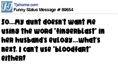 X says so....my aunt doesn't want me using the word "fingerblast" in her husband's eulogy....what's next, I can't use "bloodfart" either?