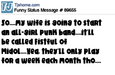 X says so....my wife is going to start an all-girl punk band....it'll be called Fistful of Midol....Yea, they'll only play for a week each month tho....