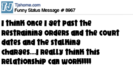 X I think once I get past the restraining orders and the court dates and the stalking charges....I really think this relationship can work!!!!