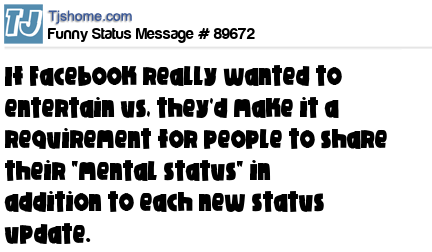 X says If Facebook really wanted to entertain us, they'd make it a requirement for people to share their "mental status" in addition to each new status update.