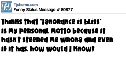 X thinks that "Ignorance is bliss" is my personal motto because it hasn't steered me wrong and even if it has, how would I know?