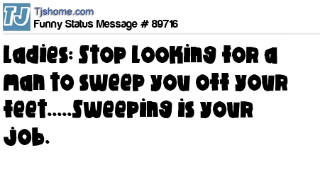 - # 104093 Ladies stop looking for a man to sweep you off your feet. Sweeping is your job.