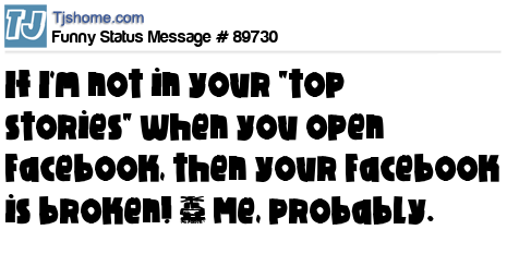 X says If I'm not in your "top stories" when you open Facebook, then your Facebook is broken! ~ Me, probably.