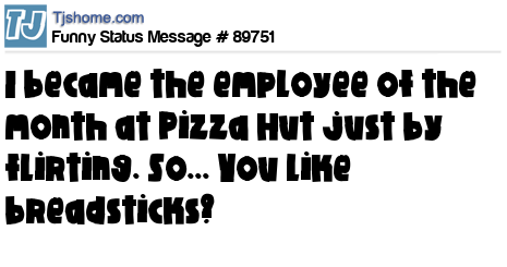 X says I became the employee of the month at Pizza Hut just by flirting. So... You like breadsticks?