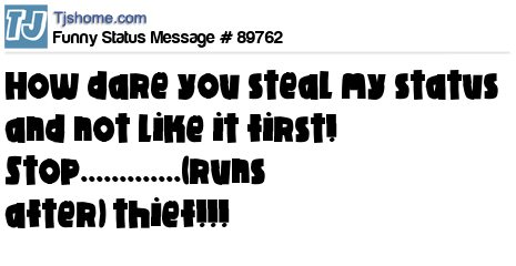 X says How dare you steal my status and not like it first! Stop.............(runs after) thief!!!