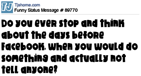 - # 68131 Do you ever stop and think about the days before Facebook and Twitter, when you would do something and actually not tell anyone?