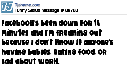 X says Facebook's been down for 15 minutes and I'm freaking out because I don't know if anyone's having babies, eating food, or sad about work.