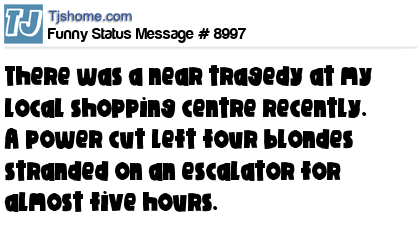 - # 9345 There was a near tragedy at my local shopping centre recently. A power cut left four blondes stranded on an escalator for almost five hours.