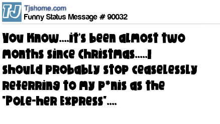 X says you know....it's been almost two months since Christmas.....I should probably stop ceaselessly referring to my p*nis as the "Pole-her Express"....