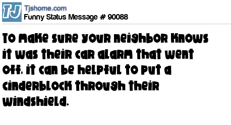 X To make sure your neighbor knows it was their car alarm that went off, it can be helpful to put a cinderblock through their windshield.