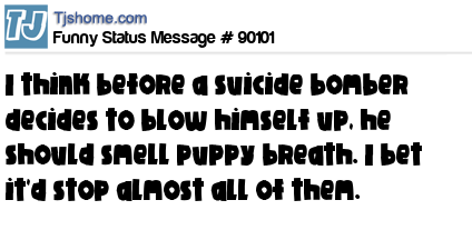 X I think before a suicide bomber decides to blow himself up, he should smell puppy breath. I bet it'd stop almost all of them.