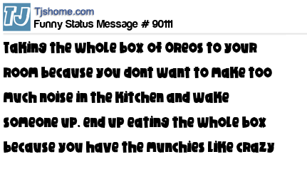 X is taking the whole box of Oreos to your room because you dont want to make too much noise in the kitchen and wake someone up. end up eating the whole box because you have the munchies like crazy