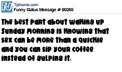X says The best part about waking up Sunday morning is knowing that sex can be more than a quickie and you can sip your coffee instead of gulping it.