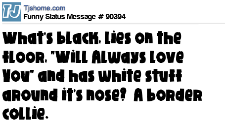 - # 91114 What's black, 'will always love you,' and has white on the nose? ... a Border Collie.