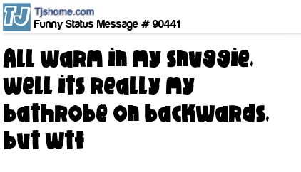 X is all warm in my snuggie, well its really my bathrobe on backwards, but wtf
