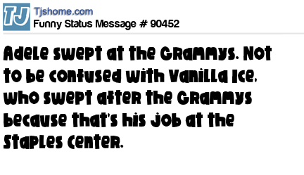 X is Adele swept at the Grammys. Not to be confused with Vanilla Ice, who swept after the Grammys because that's his job at the Staples Center.