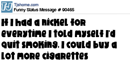 X is If I had a nickel for everytime I told myself I'd quit smoking, I could buy a lot more cigarettes